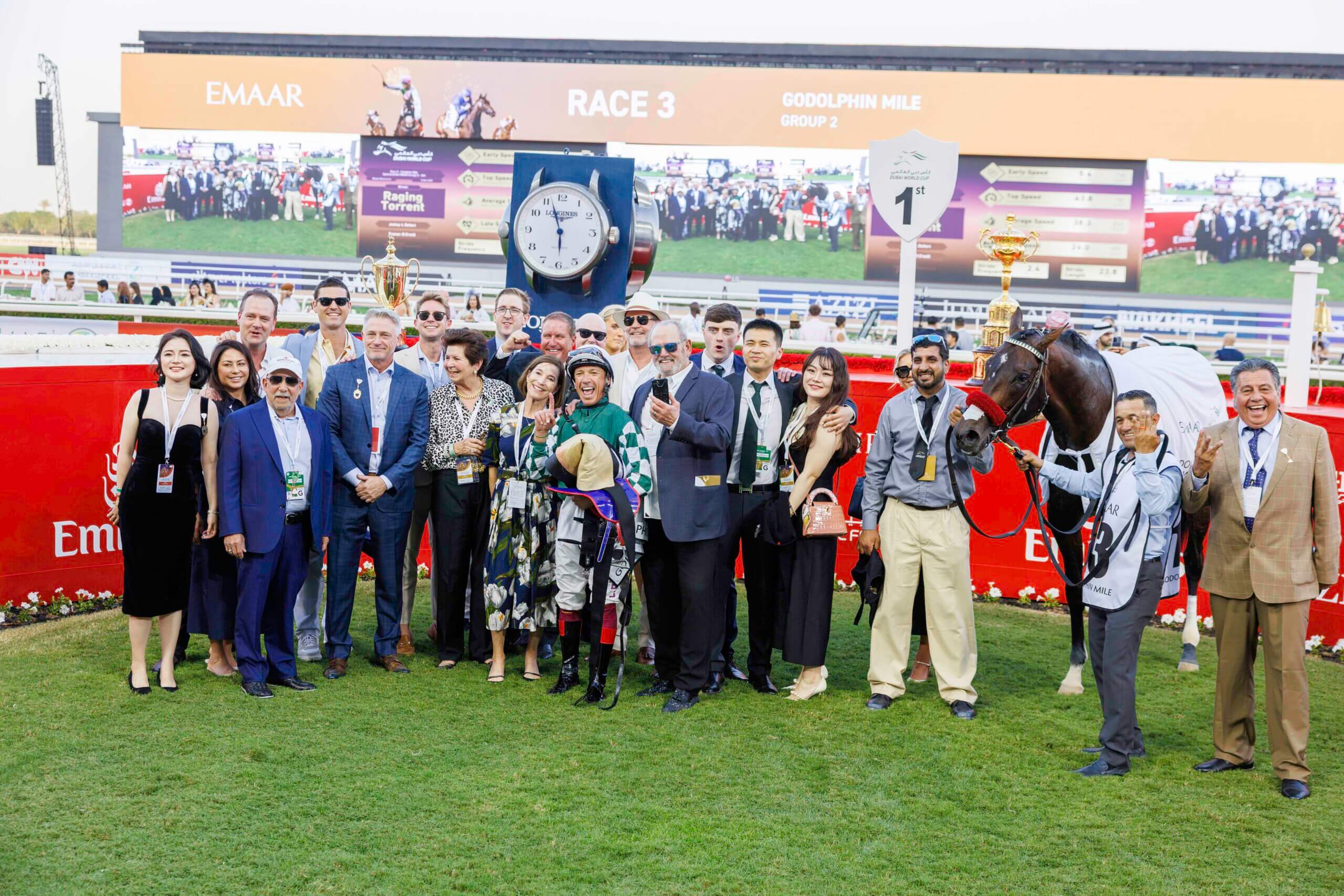 By Spendthrift stallion Maximus Mischief (USA), Raging Torrent was trained by Doug O’Neill and carried the Yulong colours to victory on two occasions in the Gr.2 Godolphin Mile in Dubai and the 2025 Gr.1 Metropolitan Handicap at Saratoga.