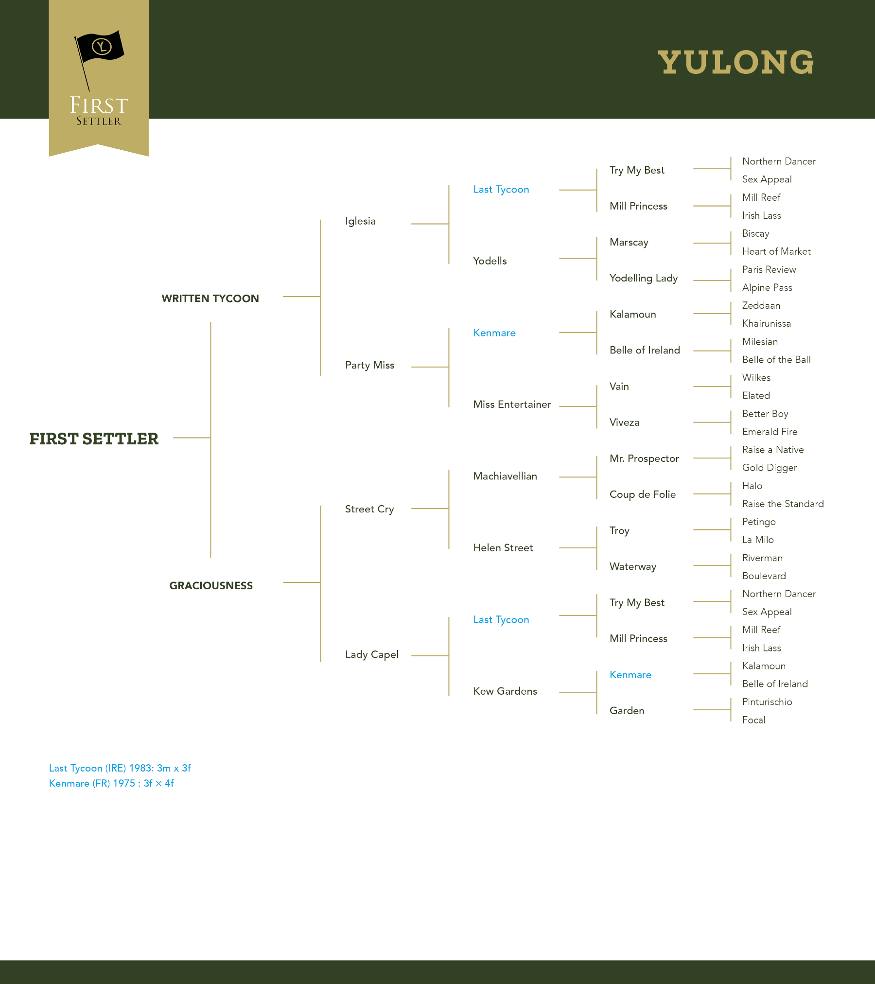 - $750,000 Magic Millions Gold Coast yearling by Yulong’s own Champion and sire of sires Written Tycoon.