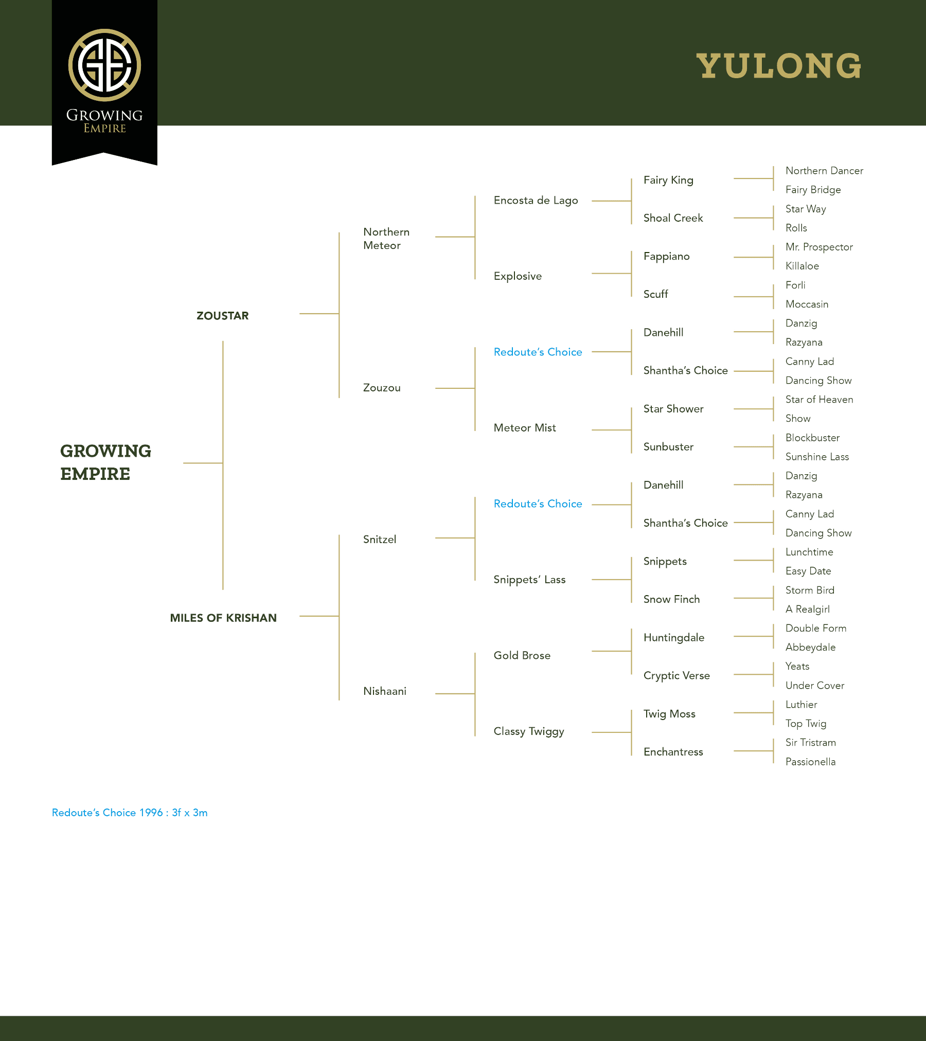 Sam Fairgray, Yulong’s Chief Operating Officer, said: “Growing Empire is a gorgeous, athletic colt with the kind of looks breeders love to see in the ring. On the track, he showed blistering speed and precocity, winning Stakes races in his spring three-year-old season, and he mixed it with the best sprinters in the country. Importantly, he has the competitive attitude and toughness we prize in our stallions.”